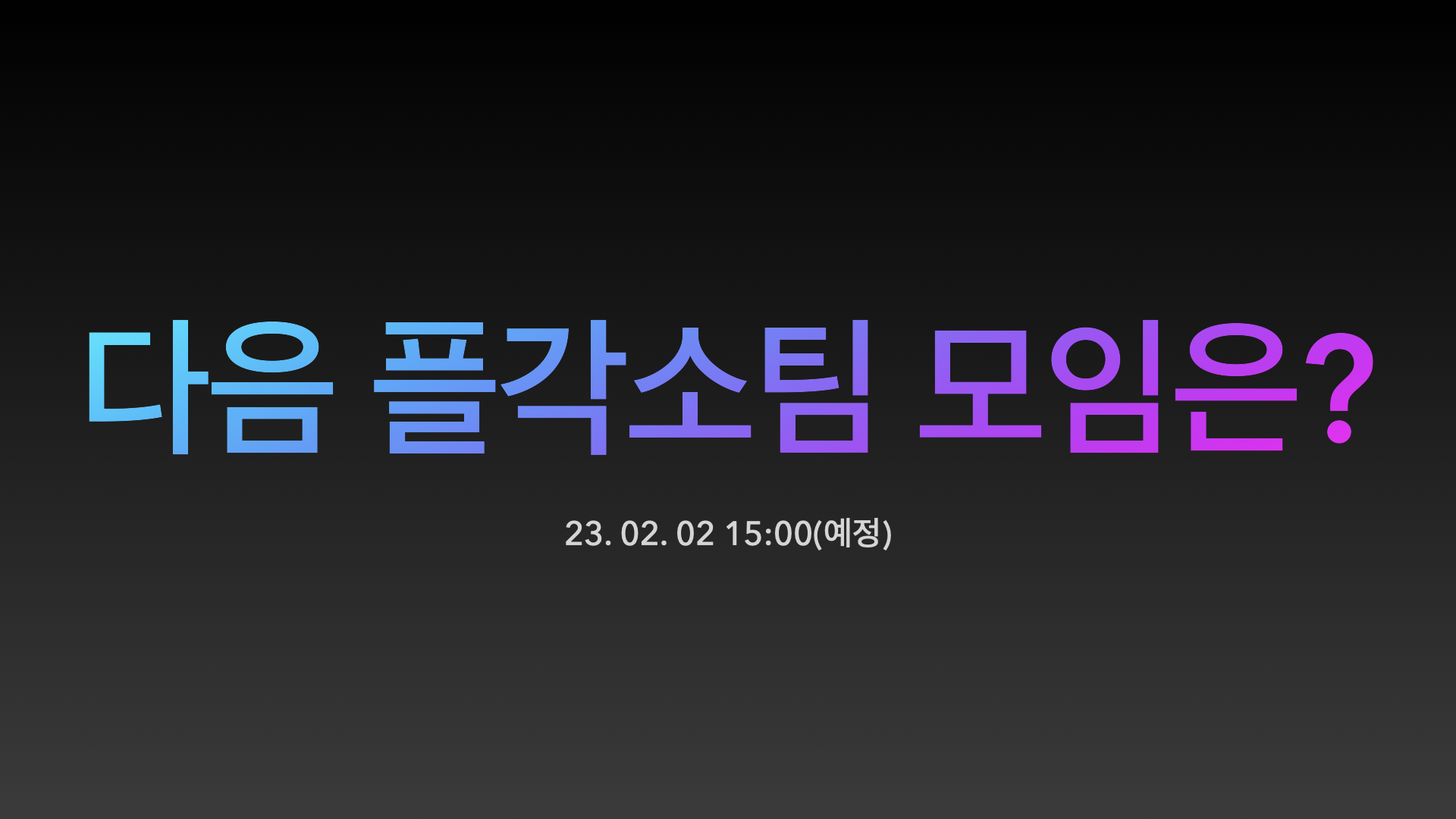 23.02.02 플각소팀 4회차 비대면 모임 후기 (0) | 2023.02.02 |