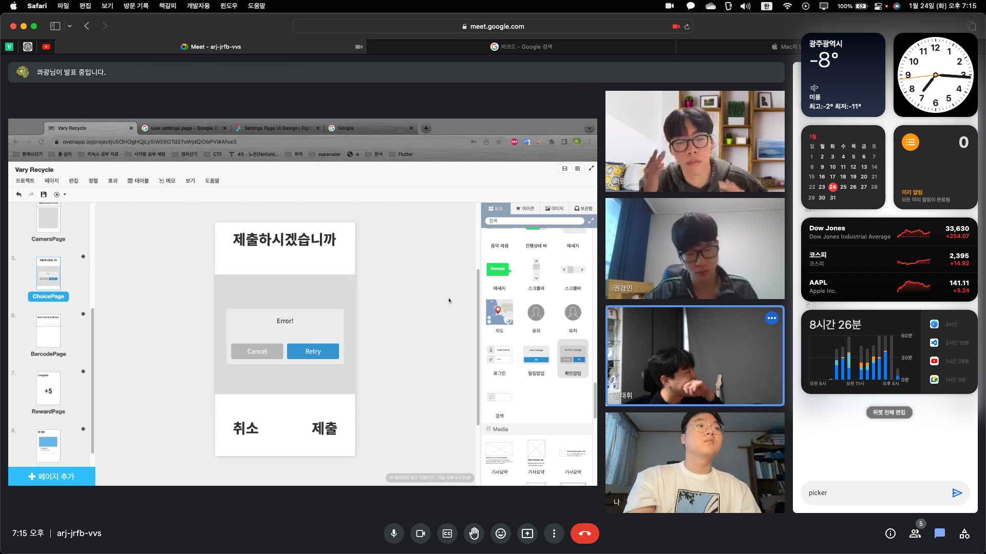 오늘 한 모각소 3차에서는 저번에 만든 UI를 더 구체화하는 시간을 가졌다. 각 페이지 별로 담당하는 기능을 구체화하고, 그 기능에 필요한 UI의 구성을 함께 토론해 구체화했다. 그렇게 구성한 각 페이지 별로 일의 경중에 따라서 담당을 나누었다. 팀 단위 프로젝트는 모두 처음이었지만, 모두 진지하게 참여하는 모습이 개인적으로 인상적이었다. 지난 2차에서 한 개인적인 과제인 Firebase에 프로젝트를 연결해 로그인하는 과정은 익숙해졌지만, FireBase Machine Learning 기능은 아직 사용을 해보지 않아서 구체적인 기능을 구현하는데 애를 먹을것 같다. 해당 부분을 담당한 멤버와 함께 머리를 맞대고 고민을 해서 다음 시간에는 조금 더 준비된 상태로 임해야겠다.